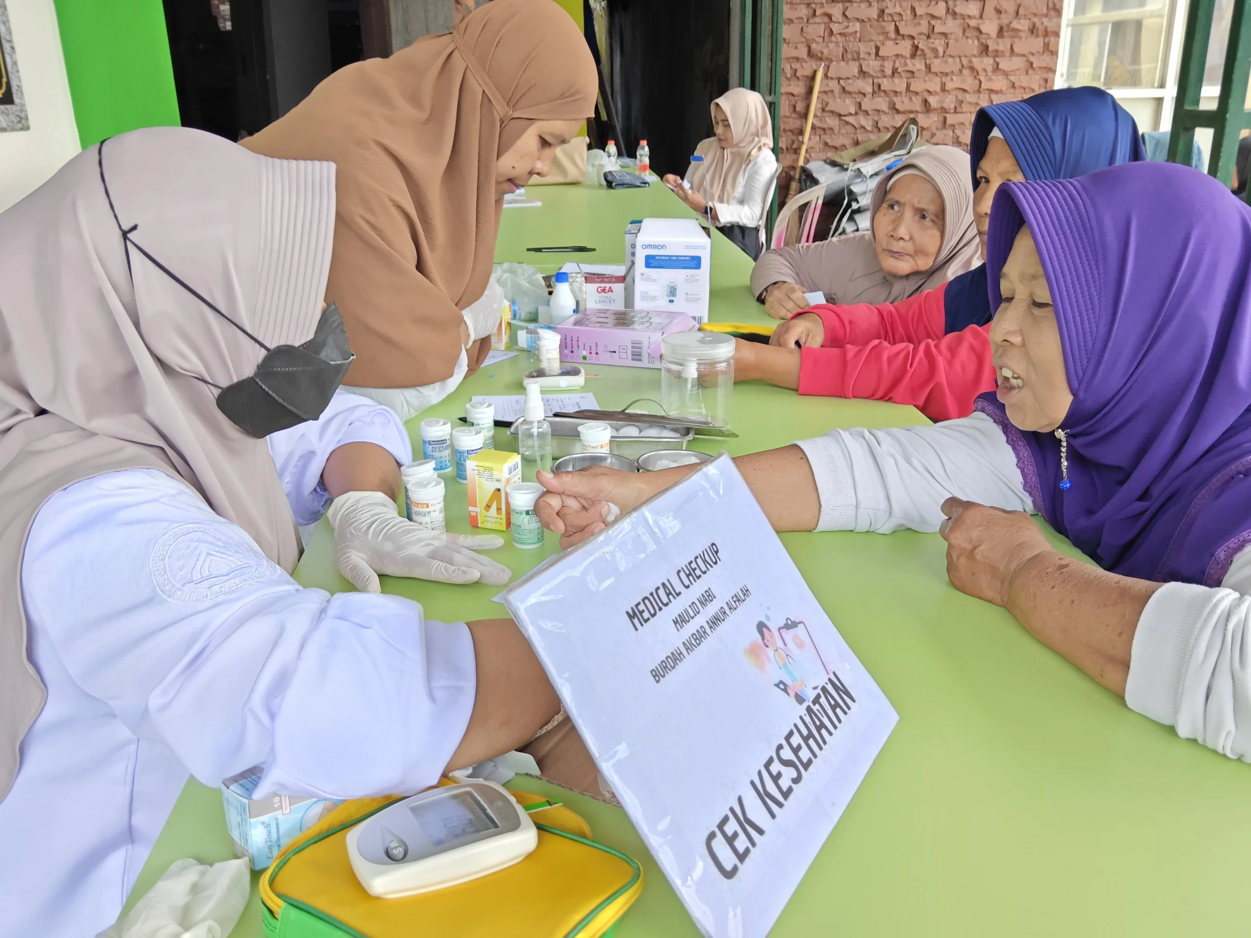Salah satu rangkaian kegiatan sosial yang rutin diadakan oleh Majelis Sholawat Burdah Annur Alfalah adalah layanan Pemeriksaan Kesehatan Gratis. Program ini dilaksanakan pada pagi hari, sebelum acara inti pembacaan Selawat Burdah diselenggarakan pada malam harinya. Inisiatif ini merupakan upaya nyata majelis untuk memberikan dukungan sosial serta menanamkan kesadaran akan pentingnya kesehatan di kalangan jemaah dan masyarakat luas.